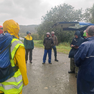 Det var meldt veldig dårlig vær denne dagen, med pøsregn og sterk vind, men vi ville likevel gjerne gjennomføre turen, og bli kjent i terrenget der Statkraft vil bygge et enda større vindkraftverk, enn det som ble avslått i 2012. Vi har med flere folk fra Motvind Sørvest, lokale folk fra Bjerkreim, Ingrid Fiskaa og Øystein Nereng fra SV (alltid bra med politikere som deltar! slike politikere løftere vi gjerne frem!), Arnfinn Nilsen fra Norges Miljøvernforbund og Anne Kathrine Lycke, kjent fra Den Norske Turistforeningen, nå også Naturvernforbundet. Alle kjenner vi verdien av å stå sammen, og samarbeide, skal denne kampen vinnes.
